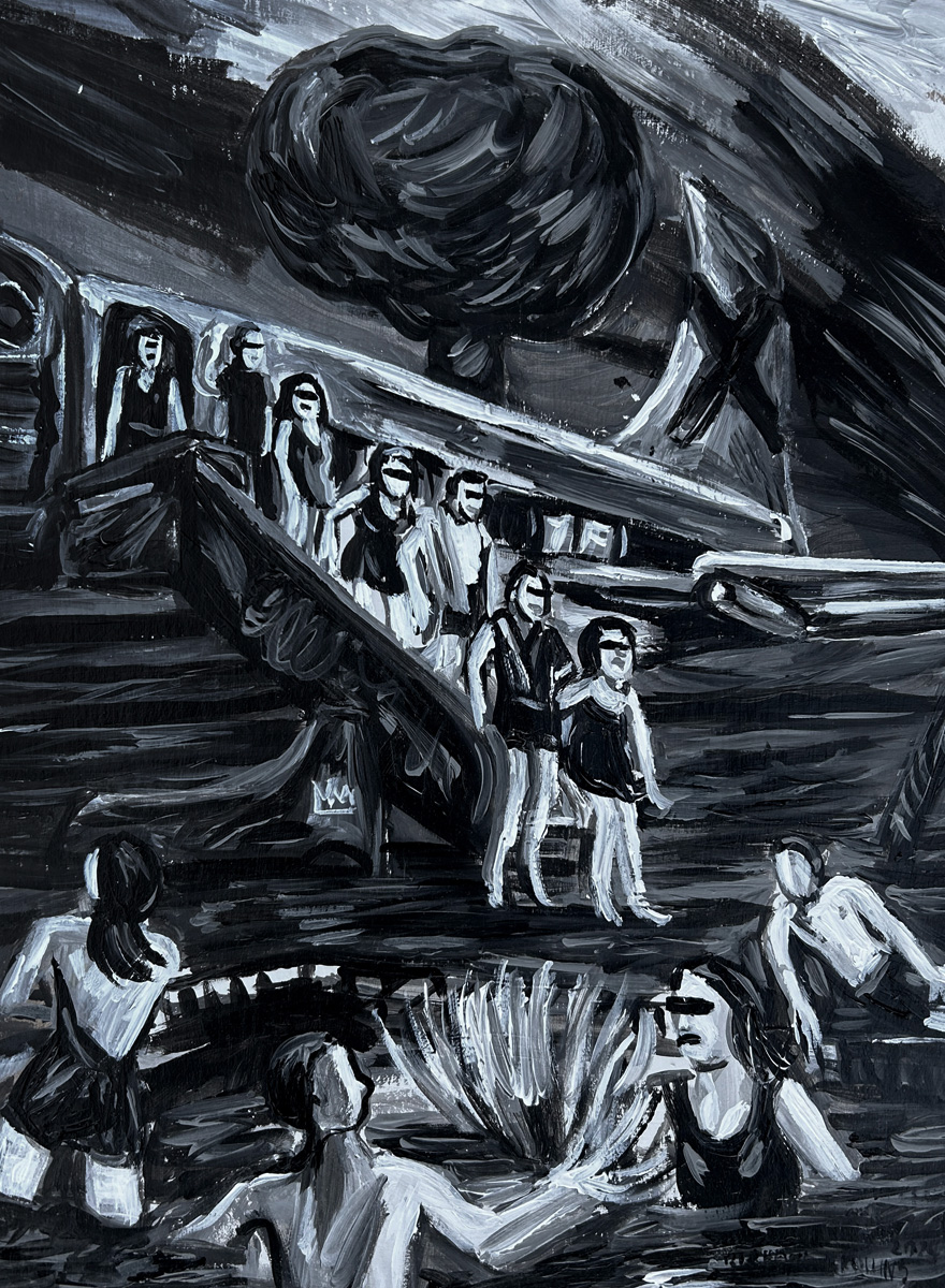 Uninvited Guests | Acrylic on Sheet Cardboard | 9 x 12 inches | 2024