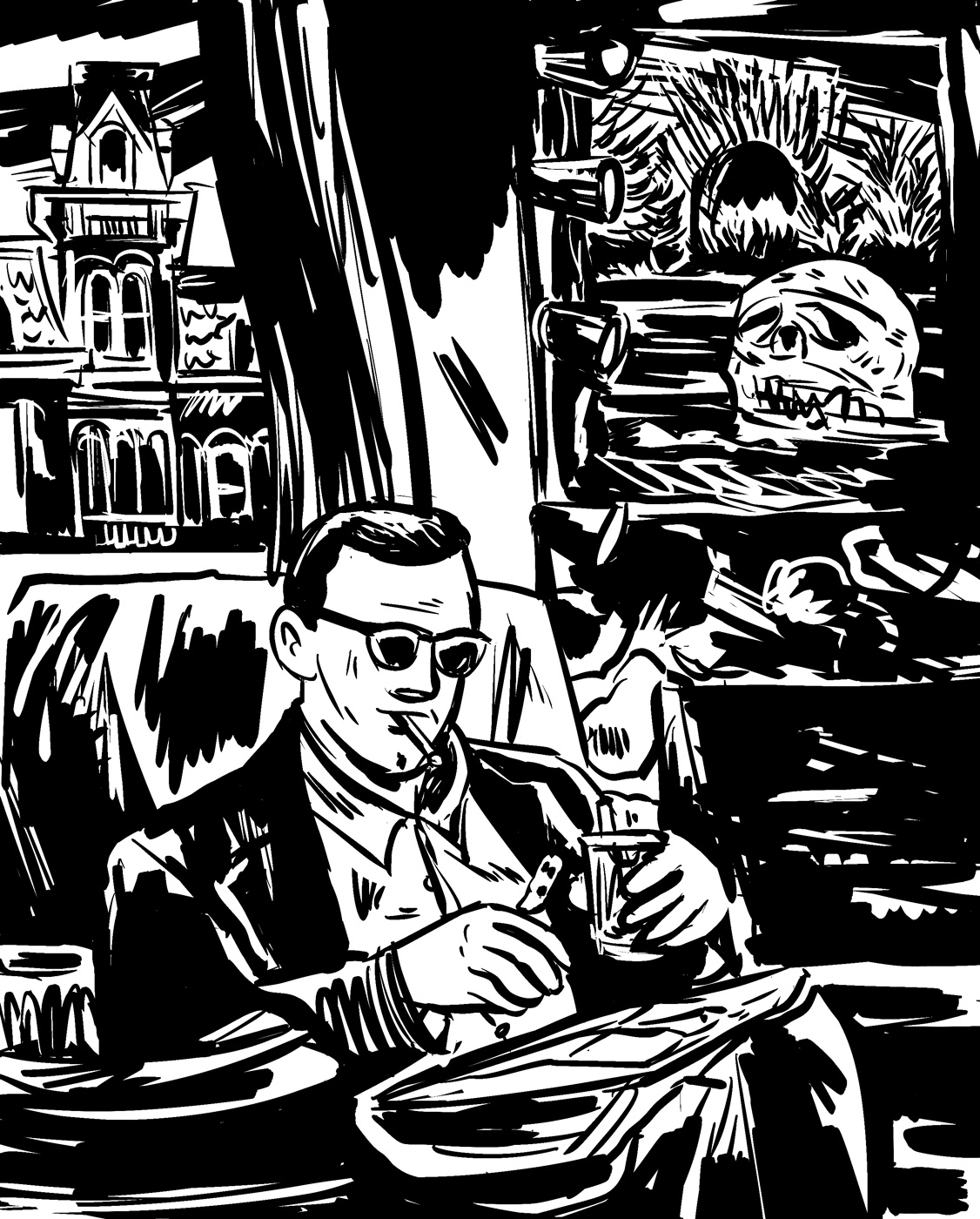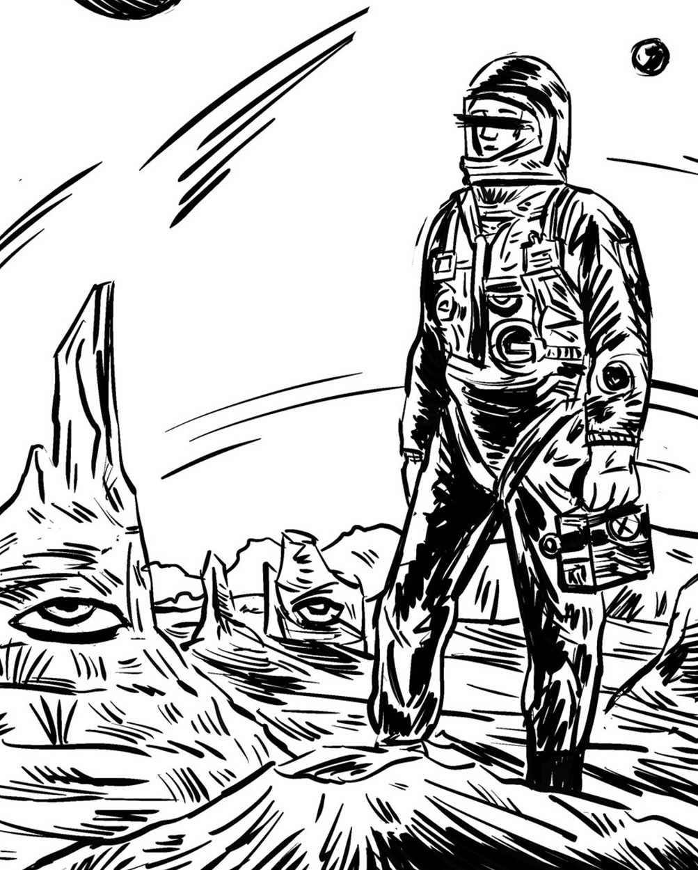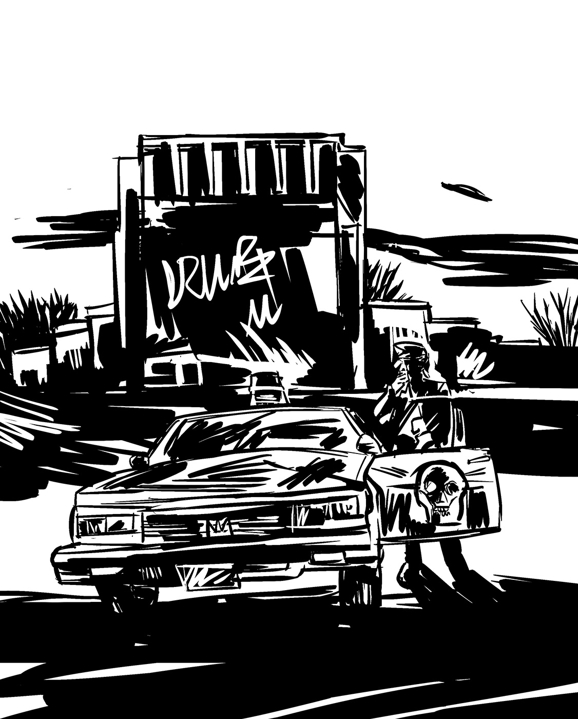 In a world as monstrous as it is mysterious, the ghostly remains of past civilizations haunt the dark, shadowy recesses of modern human society—actors in an archaic play, their countenance a dark veneer of mythical masks. Ancient landscapes populated by looming and broken statues of abandoned gods set the scene while unidentified objects circle the skies. What emerges is an eerie caricature of human absurdity manifest by a death wish.