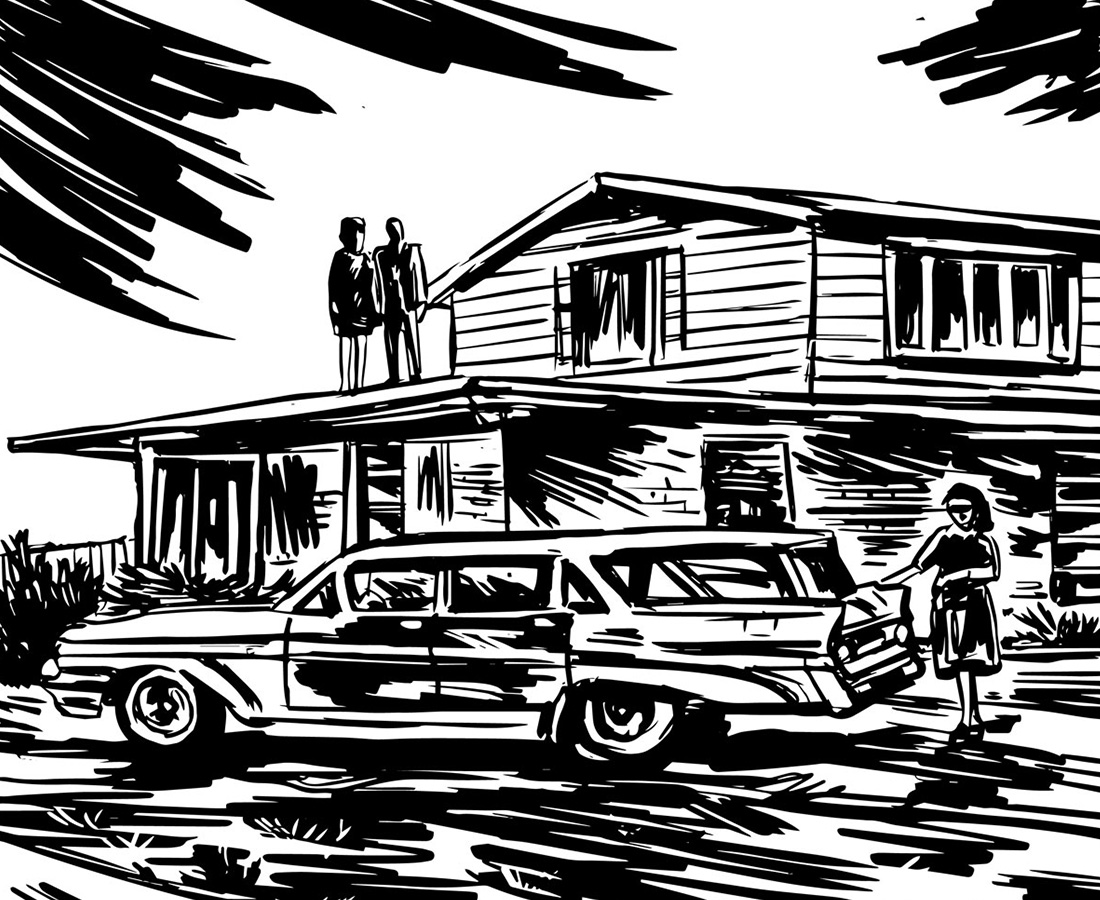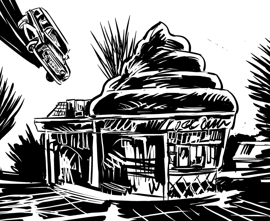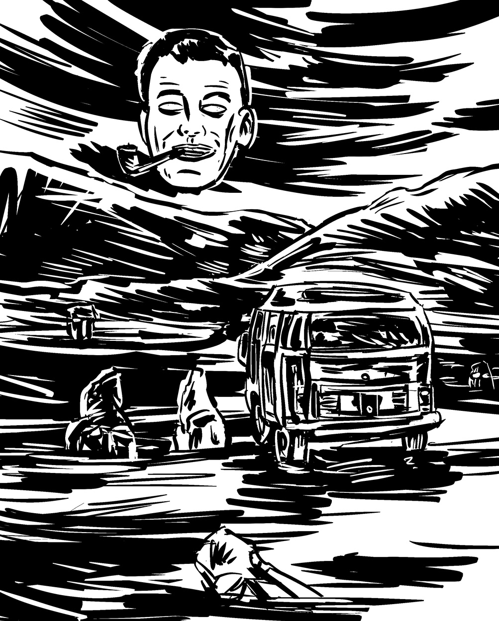 In a world as monstrous as it is mysterious, the ghostly remains of past civilizations haunt the dark, shadowy recesses of modern human society—actors in an archaic play, their countenance a dark veneer of mythical masks. Ancient landscapes populated by looming and broken statues of abandoned gods set the scene while unidentified objects circle the skies. What emerges is an eerie caricature of human absurdity manifest by a death wish.