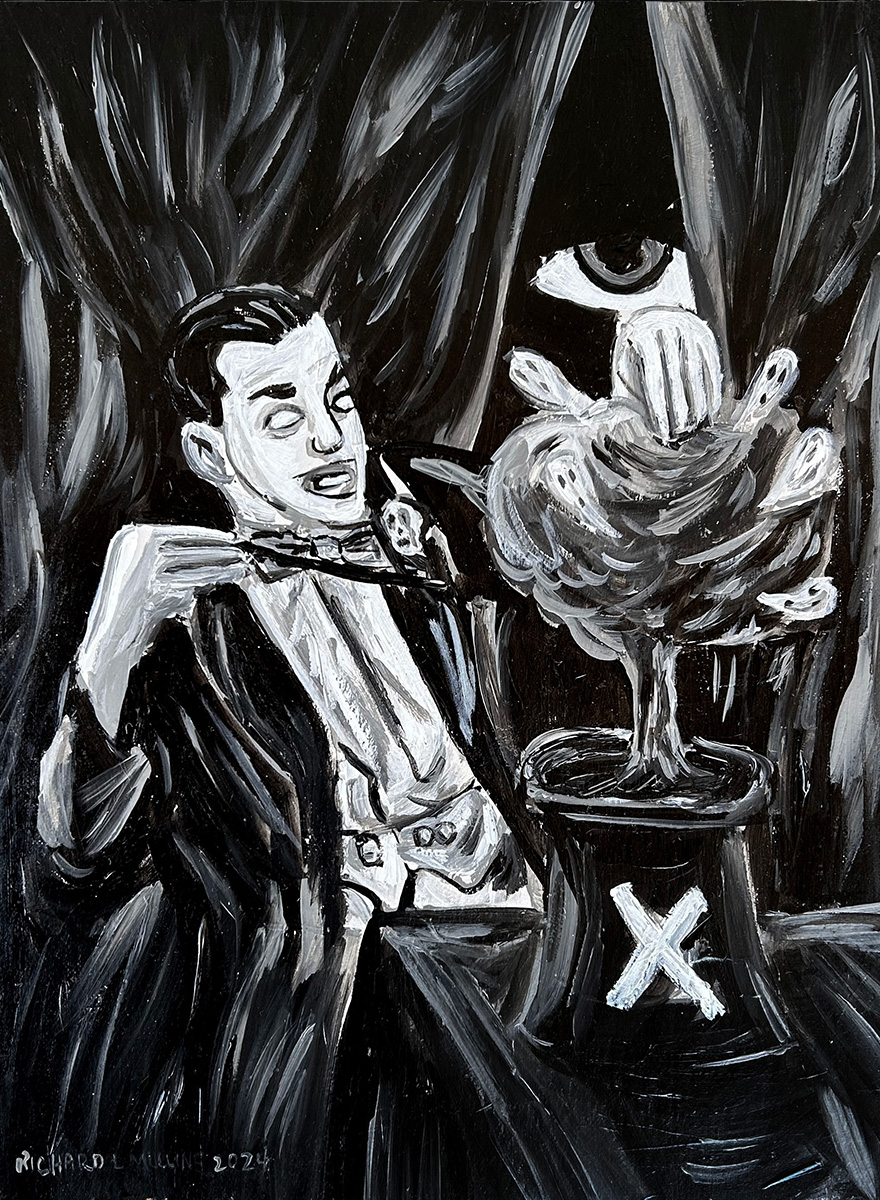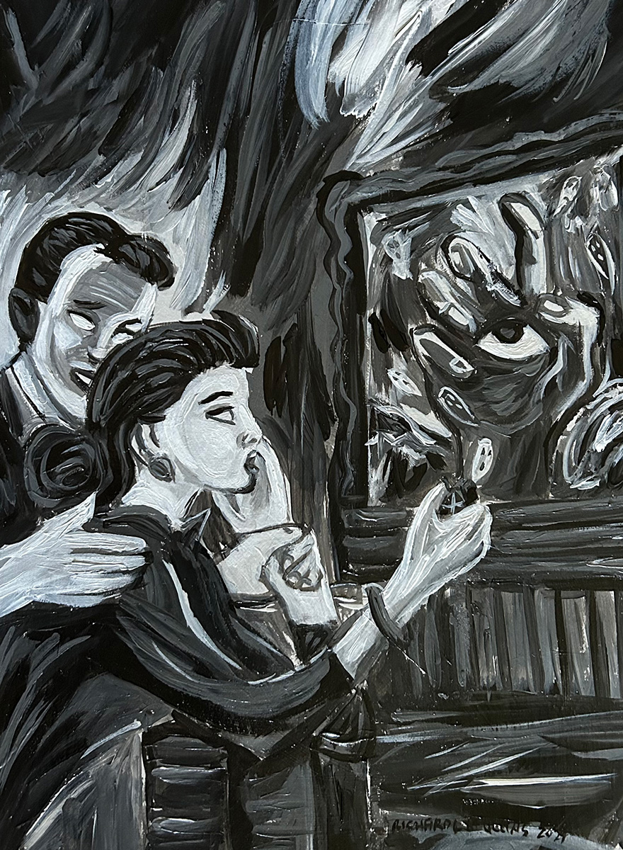 Lie For A Lie | Acrylic on Sheet Cardboard | 9 x 12 inches | Private Collection | 2024